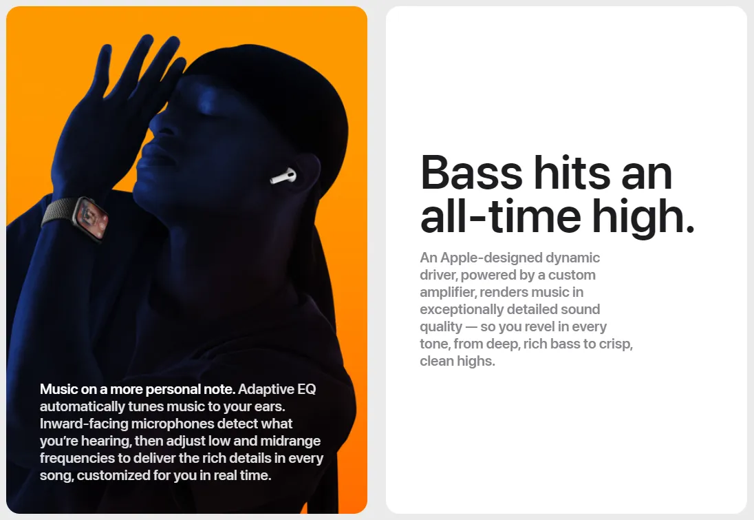 - مدة استماع تصل إلى 6 ساعات بشحنة واحدة (تصل إلى 5 ساعات مع تمكين الصوت المكاني الشخصي)