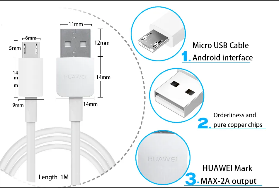 كابل شحن سريع أصلي من هواوي، مزود بموصل Micro USB، يدعم شحن الهاتف ونقل البيانات، ويدعم 5 فولت/9 فولت 2 أمبير، شحن سريع أثناء السفر، شحن فائق السرعة