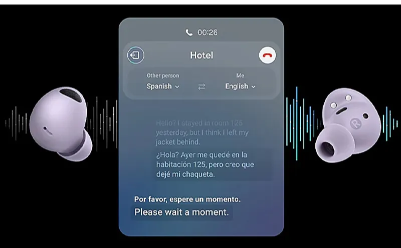 - ELLOS DICEN “HOLA”, TÚ ESCUCHAS “HOLA”: Ahora puedes comunicarte libremente con alguien en otro idioma; usa la función Intérprete en tu teléfono Galaxy para escuchar traducciones en tiempo real a través de tus Galaxy Buds durante conversaciones cara a cara¹