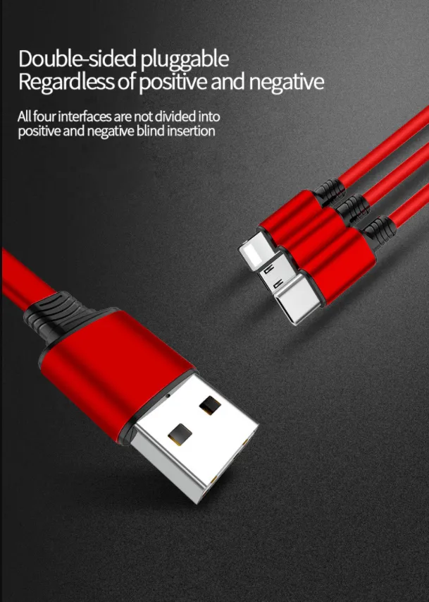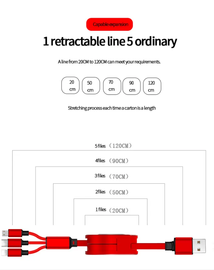 120cm 3 In 1 USB Charge Cable for iPhone & Micro USB & USB C Cable Retractable Portable Charging Cable For Iphone X 8 Sam